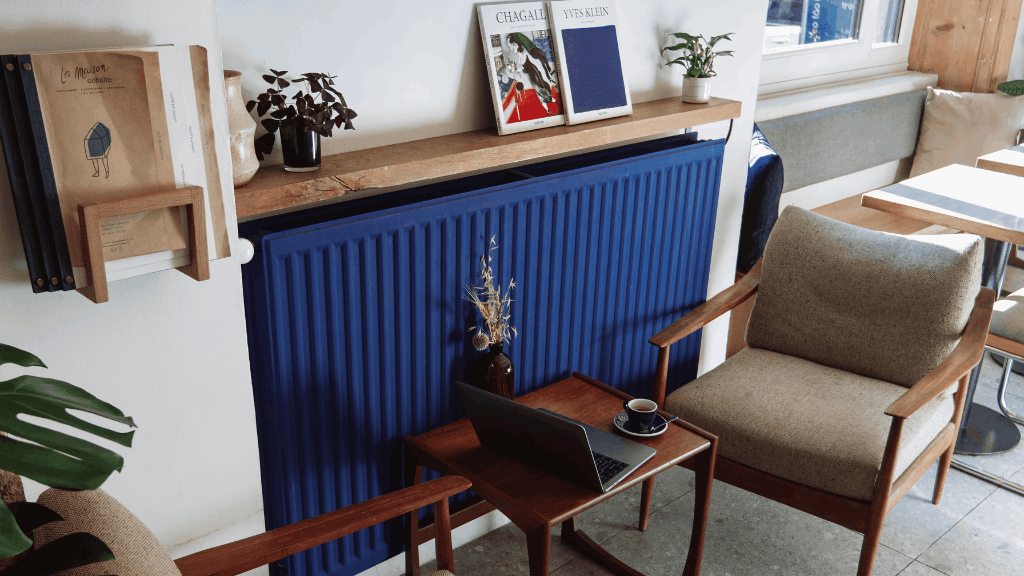 Un établi avec des tampons en bois personnalisés sur l'identité de La Maison Cobalte, pour fabriquer vos propres cartes postales, dessins ou marque-pages.